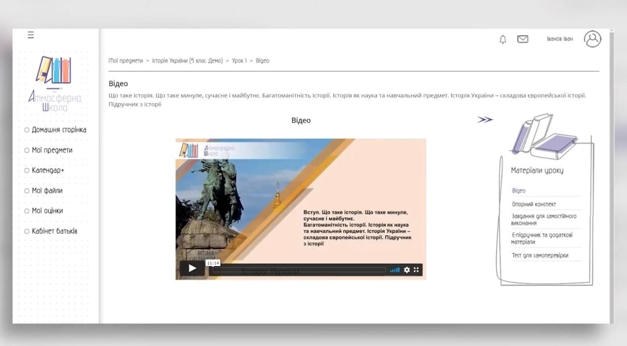 Основний елемент уроку — це відеопрезентація. Природничі дисципліни містять ролики лабораторних робіт, що наочно доповнюють теорію. До кожної теми є й додаткові онлайн-підручними. Наскільки учень успішно засвоїв матеріал допоможуть з'ясувати підсумкові тести для самоконтролю.