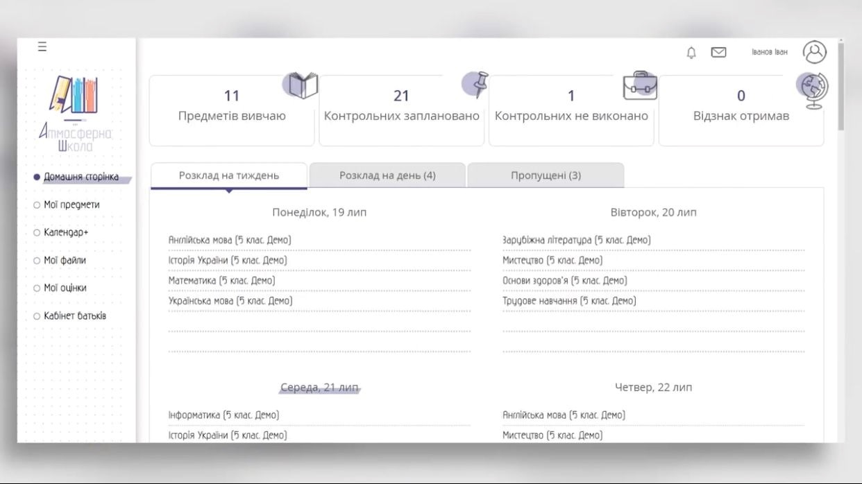 Під час війни безплатні освітні матеріали пропонує дистанційна платформа "Атмосферна школа" для учнів 5-11 класів. Навчання зручне тим, що кожен самостійно планує розклад і час занять. Уроки відбуваються у формі відеопрезентацій та завдань для самоконтролю. Зараз навчальний заклад надає безплатний доступ до освітнього пакета "Слухач".