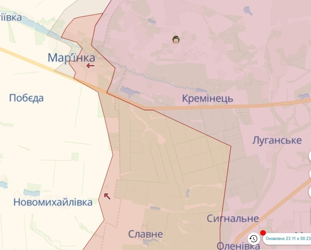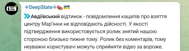 Аналітики ресурсу DeepState дійшли висновку, що повідомлення росіян про нібито захоплення ними центральної частини Мар'їнки — не відповідають дійсності.