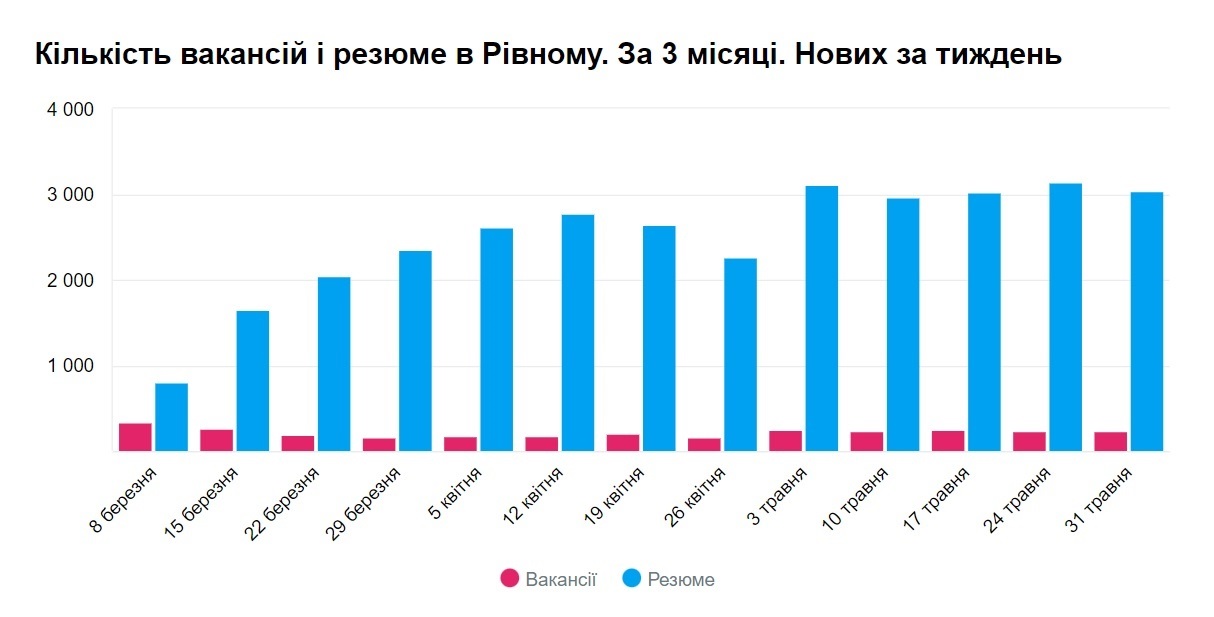 Кількість резюме у Рівному значно перевищує кількість вакансій.