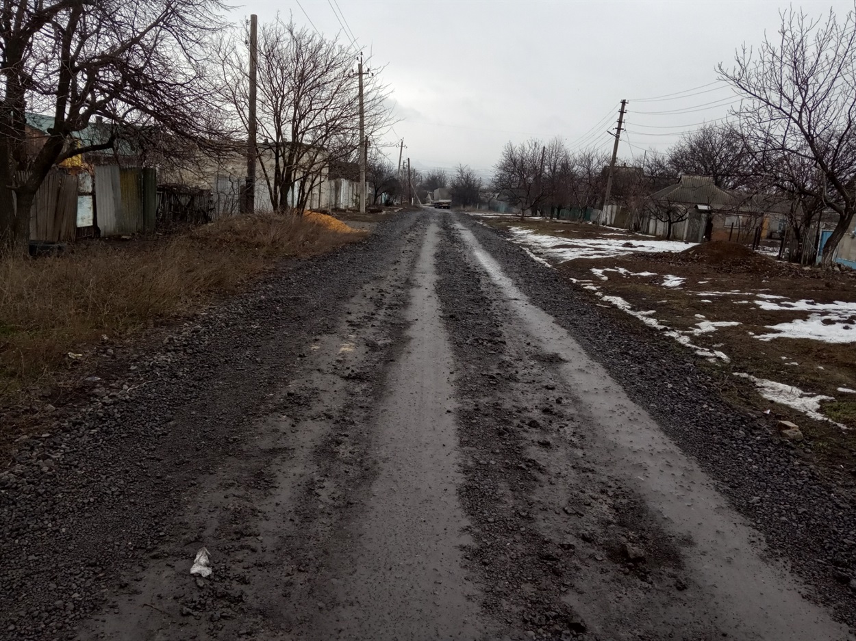 Ця вулиця «найулюбленіший» маршрут місцевих таксистів. У минулому році ситуацію намагались виправити. Ділянку дороги до повороту на кладовище засипали шлаком. Зараз його утрамбували машини, а ось на більшій ділянці, до проспекту Запорізького калюжі та бруд зникнуть лише влітку. Ямковим ремонтом тут не обійтись. Дорога до кладовища - непогане місце для зйомок фільму жахів.